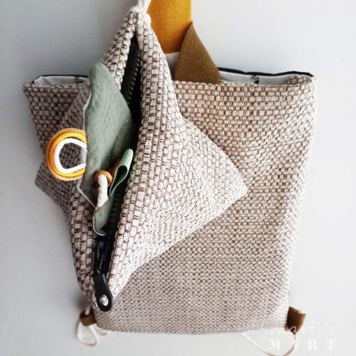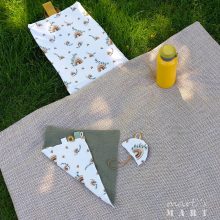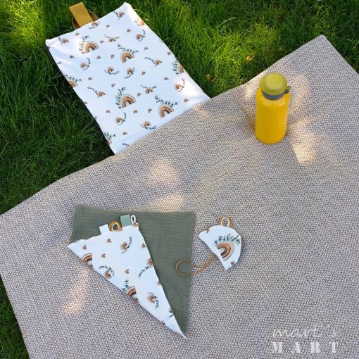 Játszószőnyeg hátizsákkal, natúr - olajzöld - okkersárga , vízálló orkán réteggel, kül,- és beltérre