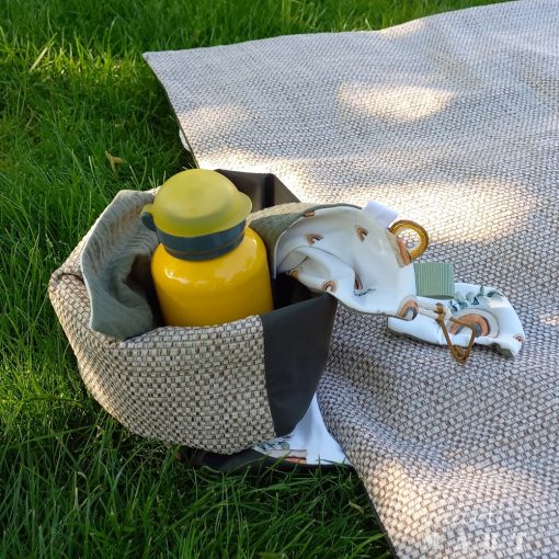 A zsák rész kis 'kosárrá' alakítható, ebbe tehetitek napozáskor, piknikezéskor az ivópoharat, kulacsot...