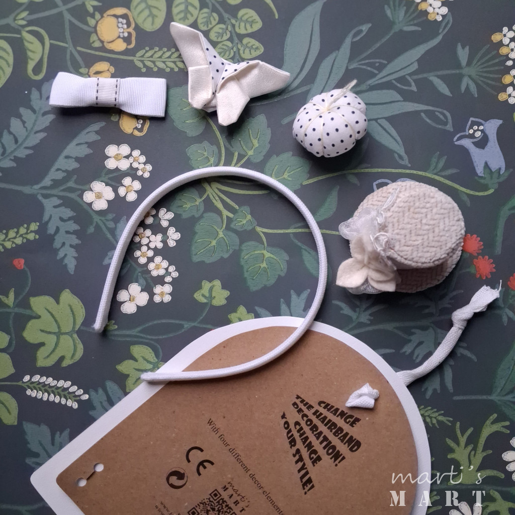 Eredeti funkcióját, a haj felfogását is ellátja, díszítés nélkül is használható. A 'marti' furfangos fejpánt készlet jól jön a szerepjátékokhoz, egy szülinapi partin, más ünnepekkor, vagy akár fotózáskor is.