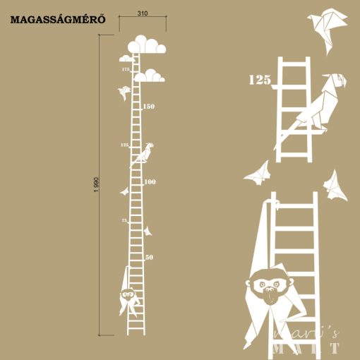 Akár be is jelölhetitek a létrán az aktuális magasságát. A létra formát a BABAHÁZ falmatricák mellé terveztük, de önmagában is jól mutat!
