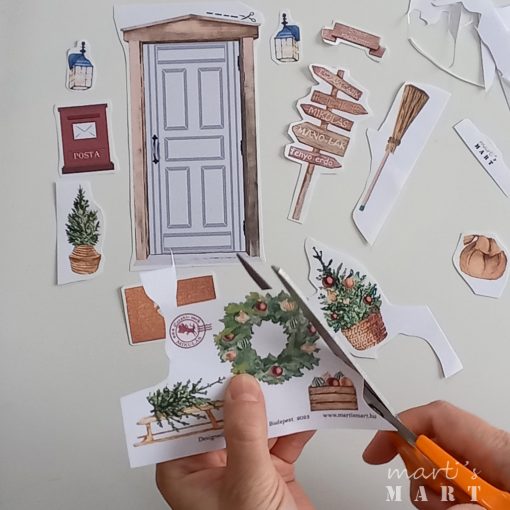 A 15 darab, karácsonyi témájú elemet, egyesével, ollóval vághatod ki!