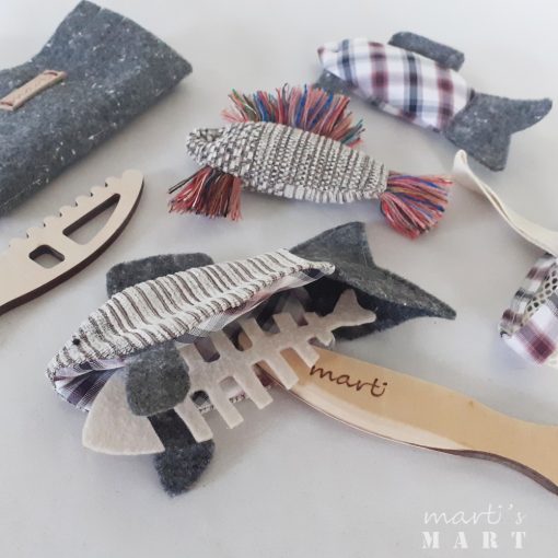 1 db mágneses, filézhető hal, 1 db "punk" hal, 1 db mintás hal,