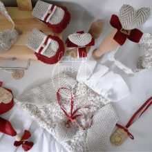 Egyéb kiegészítők: bevarrható mágnes, zsenilia drót, hímzőfonal, pamut zsinór, rojt