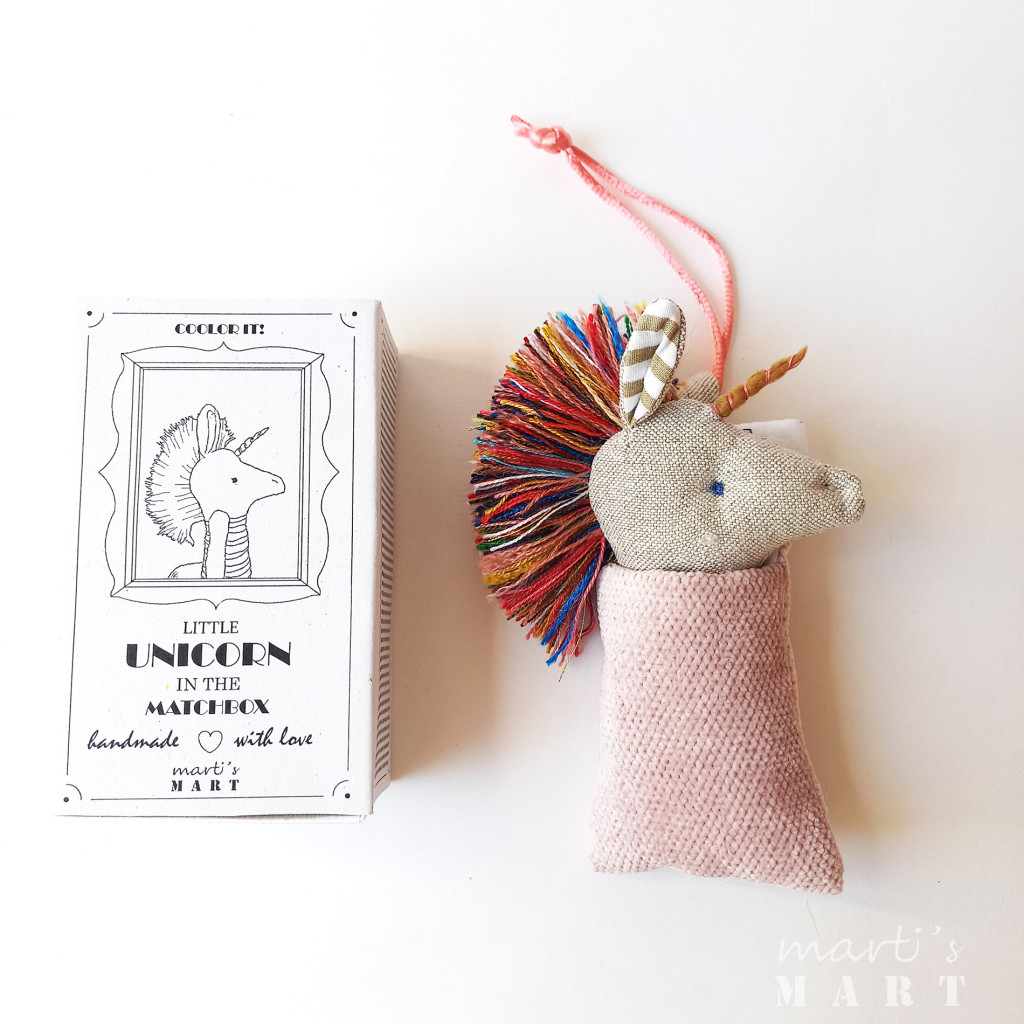 Unikornis - textiljáték gyufásdobozban, marokjáték