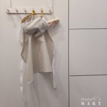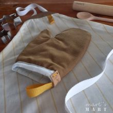 marti - konyha - szakács szett - kötény - fogókesztyű - fakanál - sodrófa, fehér-okker-csíkos