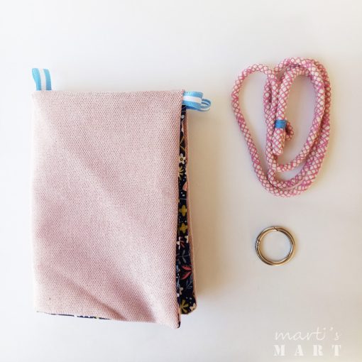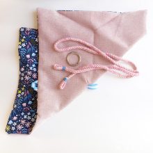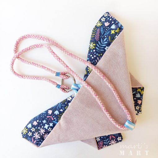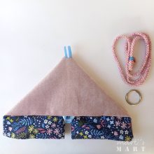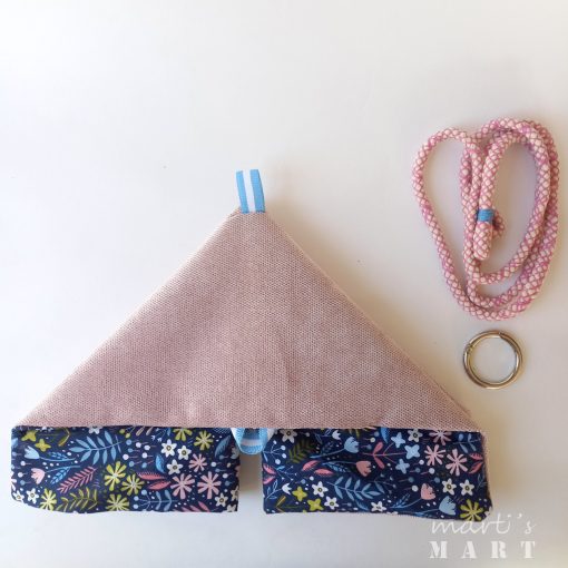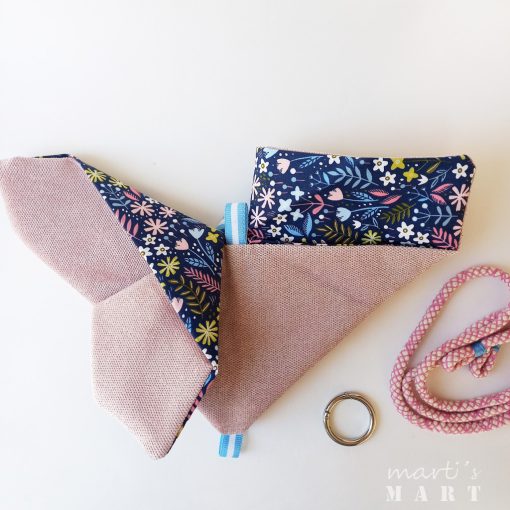 Pillangó szárny - origami - mini hátizsák, rózsaszín - sötétkék virág mintás